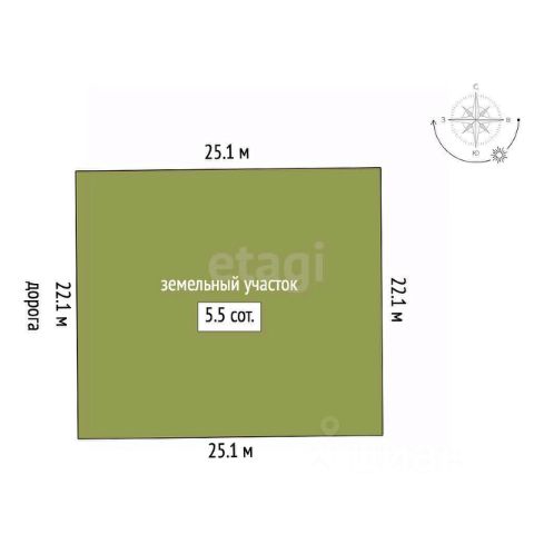 Площадь: 5,18 соток, ровный, без уклонов, расчищен, деревьев на участке нет.