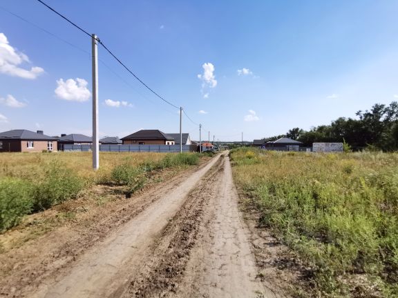 Участок граничит с рощей, через рощу выход к водоёму. Широкая подъездная дорога, в шаговой доступности "Пятёрочка", маркетплейсы, школа, строится большой торговый центр. Подъезд к посёлку по новому мосту через Ростовское море. Участок 30 метров по фасаду и в глубину 50 метров.