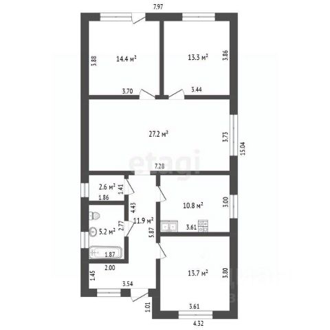 В доме гостевая комната, спальная комната, бытовая комната, обеденная комната, кухня, две веранды (вход-выход), газ, электроэнергия, вода, ванная и унитаз в доме, газовый котёл с водонагревателем. Дом отапливается газом 24/7 - осенью, зимой и весной. На улице гараж, сарай. В огороде плодородная почва, виноградники, плодовые деревья, кустарники.