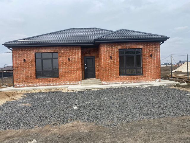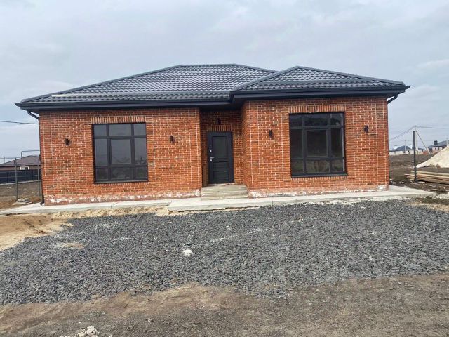Продается новый кирпичный дом по цене квартиры в экологически чистом и быстро развивающемся районе. Рядом остановка городского транспорта, школа, детский сад, магазины. Дом кирпичный 2024г. с удобной планировкой, общей площадью 87м2, на 2,5 сотках земли. 3 комнаты, кухня-гостиная, с выходом во двор в зону барбекю, ванная и санузел, котельная с возможностью установки дополнительного сан. узла, энергосберегающие металлопластиковые окна, крыша метало черепица, высота потолков 3м, свет, газ, вода, большой широкий коридор, сливная само впитывающая яма на 10 кубов, межкомнатные перегородки кирпич, все коммуникации, разводка электричества, воды, выводы на сплит системы, двух контурный котел. Широкий подъезд для парковки нескольких автомобилей.