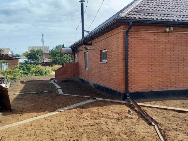 Новый дом. Потолки в прихожей, коридоре, санузле- натяжные. Потолки в спальнях, зале, гостинной- из гипсокартона. Полы в спальнях, зале- постелен ламинат. Полы в прихожей, коридоре, санузле и в гостинной- положен кафель. Стены готовы под обои, чистовая отделка. Везде установлены светильники, розетки, выключатели. Во всех восьми комнатах тёплые полы, кроме того в каждой комнате радиатор отопления. Навесной котёл Ферроли. Окна фирмы РЕХАУ. В доме скоростной интернет- Ростелеком. Во дворе установлен септик ТОПОЛ- ЭКО. Высота потолков- 2.90. Есть возможность обустроить мансандру. Крыша покрыта металлочерепицей.Стены полностью из кирпича. .Газ, электричество, вода, канализация, скоростной интернет: всё это есть в доме. Звоните, отвечу на все вопросы. Цена сложена из стоимости участка и стоимости дома.