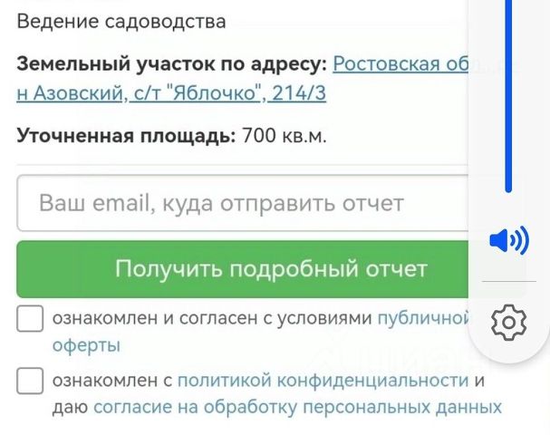 Плодовые деревья, удобренная земля дающая высокие показатели урожая. Рядом 2 канала (в которых можно искупаться и ловить рыбу). Так же имеются хоз. постройки, залит фундамент под двух этажный дом (6м*8м*80см) Электричество есть. СНТ "Квант" 18 улица, участое 832 От Ростова-на-Дону 26 км. От Азова 22 км. От Батайска 8 км. Добраться можно на автомобиле, автобусе, электричке (станция Высочино или 1375 км). Географические координаты участка 47.025885, 39.619878