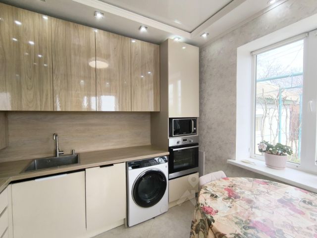 Продаётся дом для тех, кто выбирает качество жизни Успешные и состоявшиеся люди всё чаще делают выбор в пользу тишины, личного пространства и настоящего благополучия. Пока одни продолжают платить огромные деньги за жизнь в шумной, перенаселённой клетке, другие вкладываются в здоровье семьи, комфорт и спокойствие. Если вы — из тех, кто ценит простор, природу и гармонию, этот дом идеален для вас. Если вы ищете место, где можно спокойно жить, дышать чистым воздухом, растить сад и встречать рассветы у моря, — этот дом именно для вас. В доме сделан хороший свежий ремонт. Вся мебель и техника новая. Не более 2 лет. Можно заезжать и жить без доп вложений. Окна большие, пластиковые. Во всех комнатах натяжные потолки, с точечным и центральным освещением. Все полы в доме с подогревом. Санузел совмещён, стены и пол керамогранит производство Испания, фабрика Peronda , коллекция Galant. Унитаз инсталяция Ideal, гигиенический душ. Ванная Jika акрил , сантехника Lemark. Современный кухонный гарнитур МДФ в качественном пластике с встроенной техникой, которая остаётся в доме будущим владельцам. Посудомоечная машина Haier. холодильник Haier, стиральная машина Haier 8 кг. Погреб в кафеле. Гараж тёплый, есть смотровая яма, полы мраморная крошка. При въезде в гараж навес из поликарбоната, где можно поставить ещё авто. Розарий, где много сортовых роз. Виноградник. В саду: клубника, смородина чёрная и красная, крыжовник. плодовые деревья: груши, яблоки, абрикосы 4 разных сорта, алыча и т д. Во дворе подготовлен фундамент под баню 4*6 с выводом коммуникаций. так же подготовлен ленточный фундамент под терассу 25м2, с выводом коммуникаций (включена в документы). Забор на фундаменте, двойной металлопрофиль+ кирпичная кладка. Выгребная яма, летний душ и туалет. Городская вода. Скважина. Стабилизатор напряжения. Один собственник. Остановка электрички, можно добраться и в Таганрог и в Ростов каждый час.