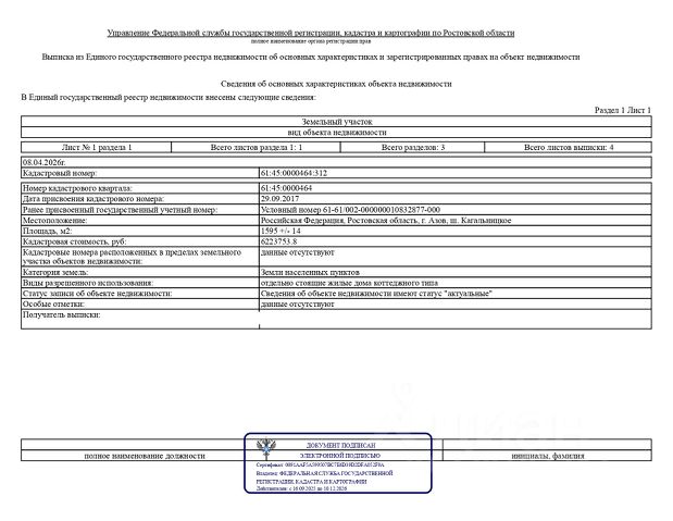 Кадастровый номер 61:45:0000464:312 Участок на Кагальницком шоссе, очень удачное расположение как для строительства жилого дома, так и для коммерческой недвижимости. Проезд с Когальницкого шоссе. При желании можно разделить (после покупки!) Один собственник! Быстрый выход на сделку! Разумный торг! Предложите свою цену, обсудим!
