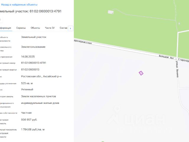 ИЖС в сердце Старочеркасска: Гармония истории, природы и идеальной транспортной доступности. Кадастровый номер: 61:02:0600013:4791 Площадь участка: 5,25 сот. Имеется возможность увеличения за счет соседних участков. Категория земель: Земли населенных пунктов ВРИ: индивидуальные жилые дома Главные преимущества: Локация: Исторический центр Старочеркасска, в шаговой доступности Покровское подворье (храм, музей), Воcкpecенcкий coбoр. Всё рядом: Школа, детский сад, магазины, МФЦ, почта, парк — 8-10 минут пешком. Престиж: В шаговой доступности Гольф-клуб. Доступность: 20 мин до Ростова, 15 мин до ТРЦ Мега Коммуникации: Свет, вода и газ . Участвуем в программе догазификации. Окружение: Тихий, экологически чистый район для комфортной жизни. Идеальный выбор для тех, кто ценит спокойствие, историю и не хочет жертвовать удобствами. Участок готов к началу строительства вашего дома. Звоните, чтобы увидеть своими глазами и оценить потенциал места!