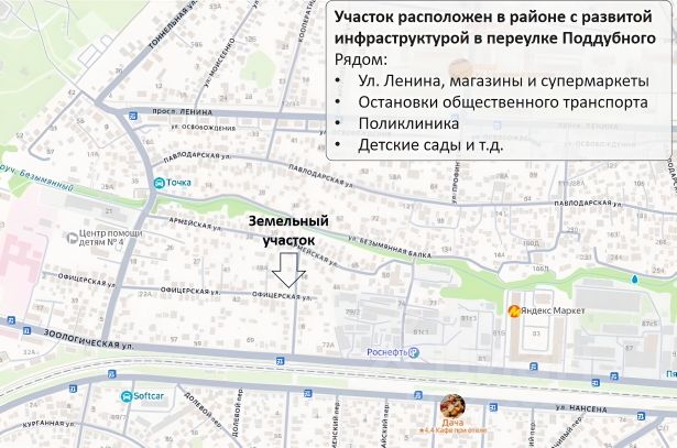 Идеальное расположение: Участок находится в районе с развитой инфраструктурой, в непосредственной близости от улицы Ленина, что обеспечивает отличную транспортную доступность и видимость.