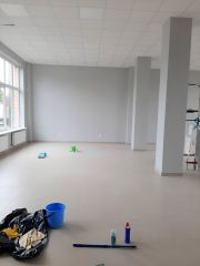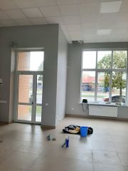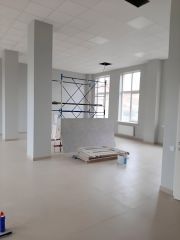 Помещение одной площадью и небольшим сан узлом. Находится на фасаде улицы Портовой и имеет большие витражные окна. Очень светлое и чистое ( только после отделки). Потолок амстронг, полы-клинкерная плитка 6060, стены штукатурка с покраской.