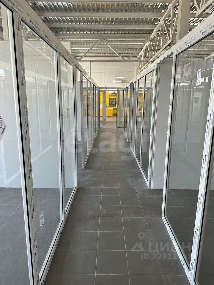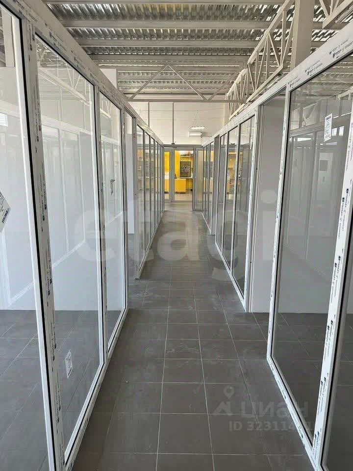 Рядом несколько однотипных помещений. Каждое помещение представляет собой индивидуальное пространство, выделенное из общего холла перегородками из триплекса высотой 210 см с алюминиевым профилем и дверьми, что обеспечивает визуальную открытость и одновременно звуковую изоляцию.