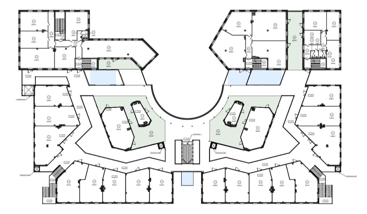 Современный комплекс: 9 двухэтажных зданий, объединённых террасами и переходными галереями. Простор и комфорт для вашего бизнеса!