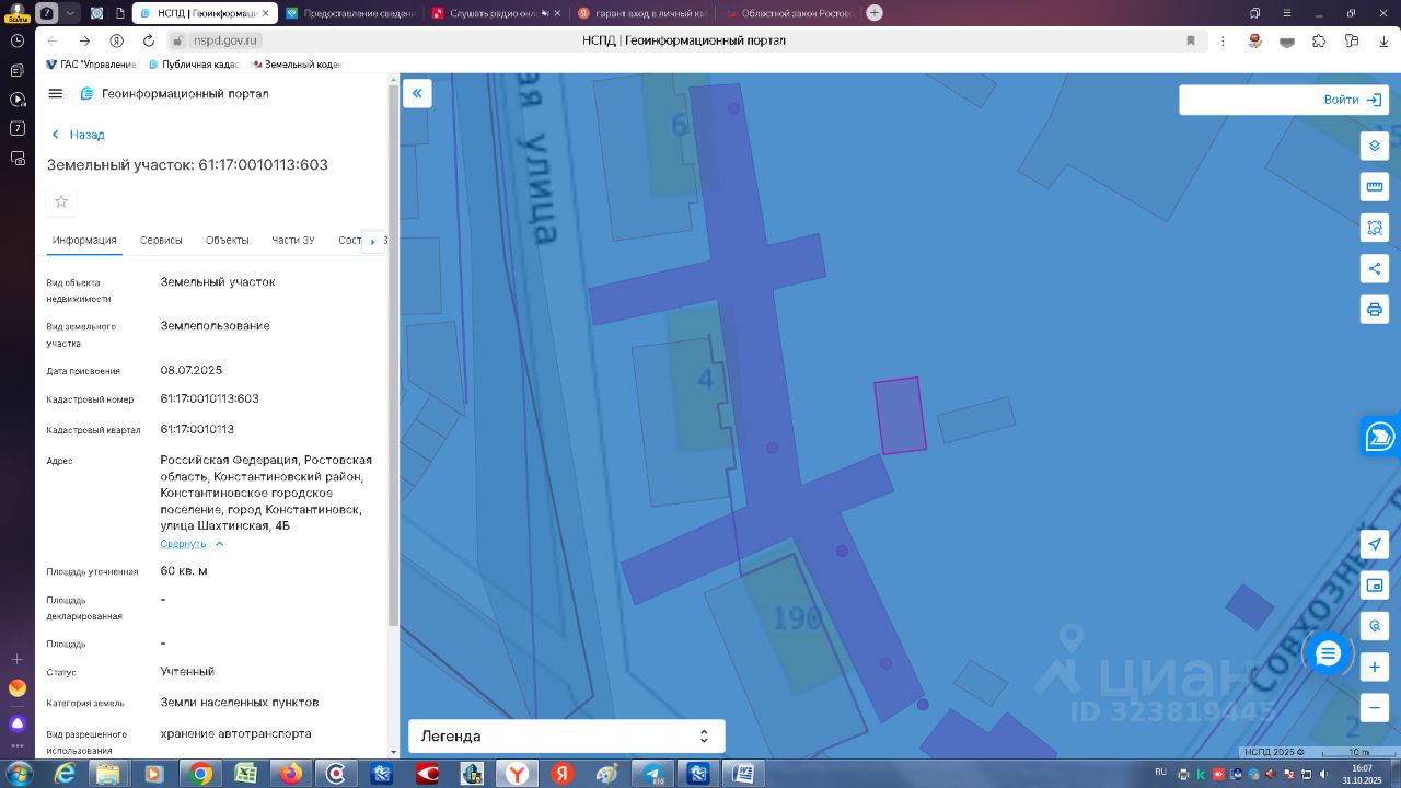 Земельный участок с кадастровым номером 61:17:0010113:603 площадь 60 по адресу Российская Федерация, Ростовская область, Константиновский район, Константиновское городское поселение, город Константиновск, улица Шахтинская, 4Б