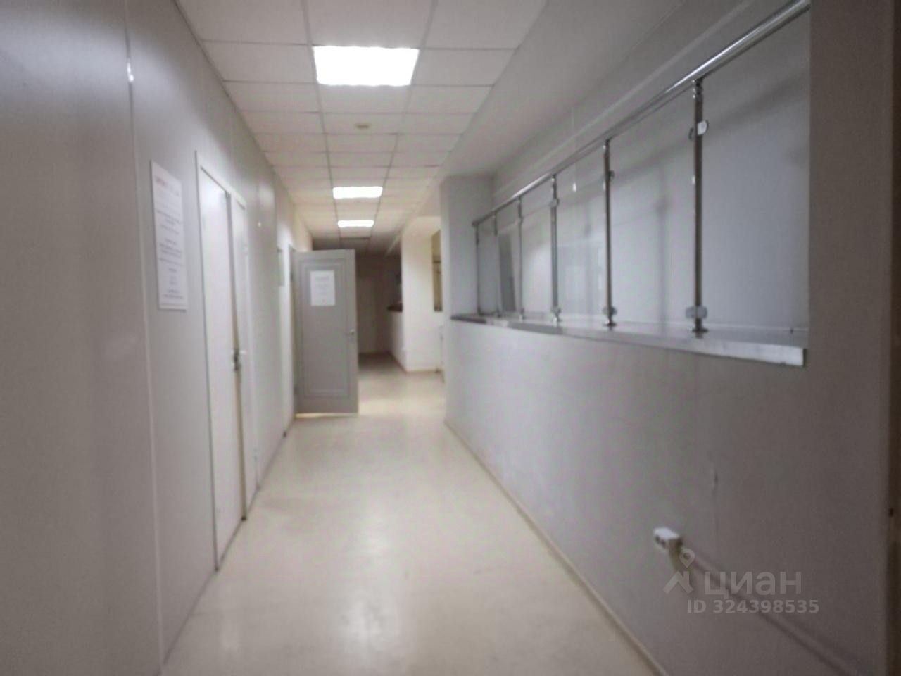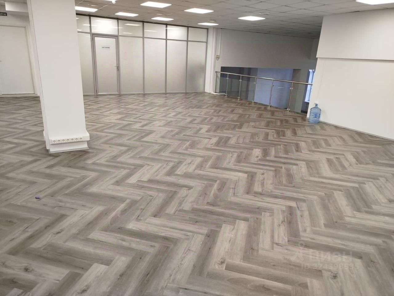 открытое пространство (open space) , зонированно стеклянными ограждениями между уровнями: