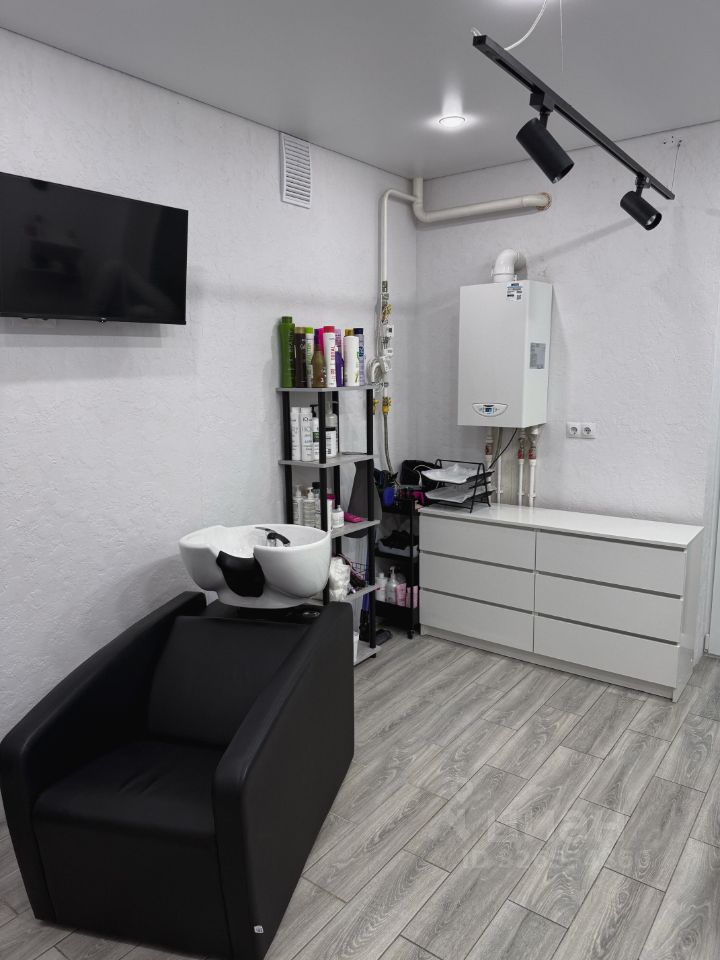 •рабочее место (зеркало с подсветкой, трековый свет, регулируемое парикмахерское кресло, так же есть парикмахерская тележка)