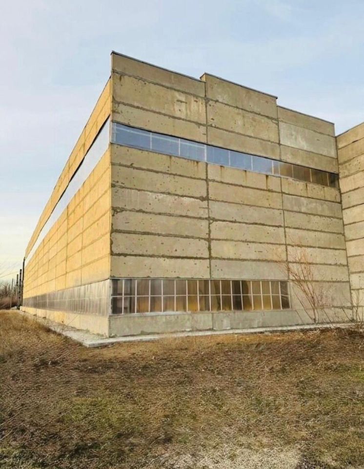 Здание: длина 86м ширина 18м высота 12 метров площадью 1500 м2, полы 10% бетон,остальное без покрытия. 150 кВт электричество
