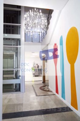 Бизнес-центр состоит из исторической инфраструктурной части и нового современного бизнес-пространства. В инфраструктурной части представлены столовая для сотрудников БЦ, кофейня, балетная школа, магазины.