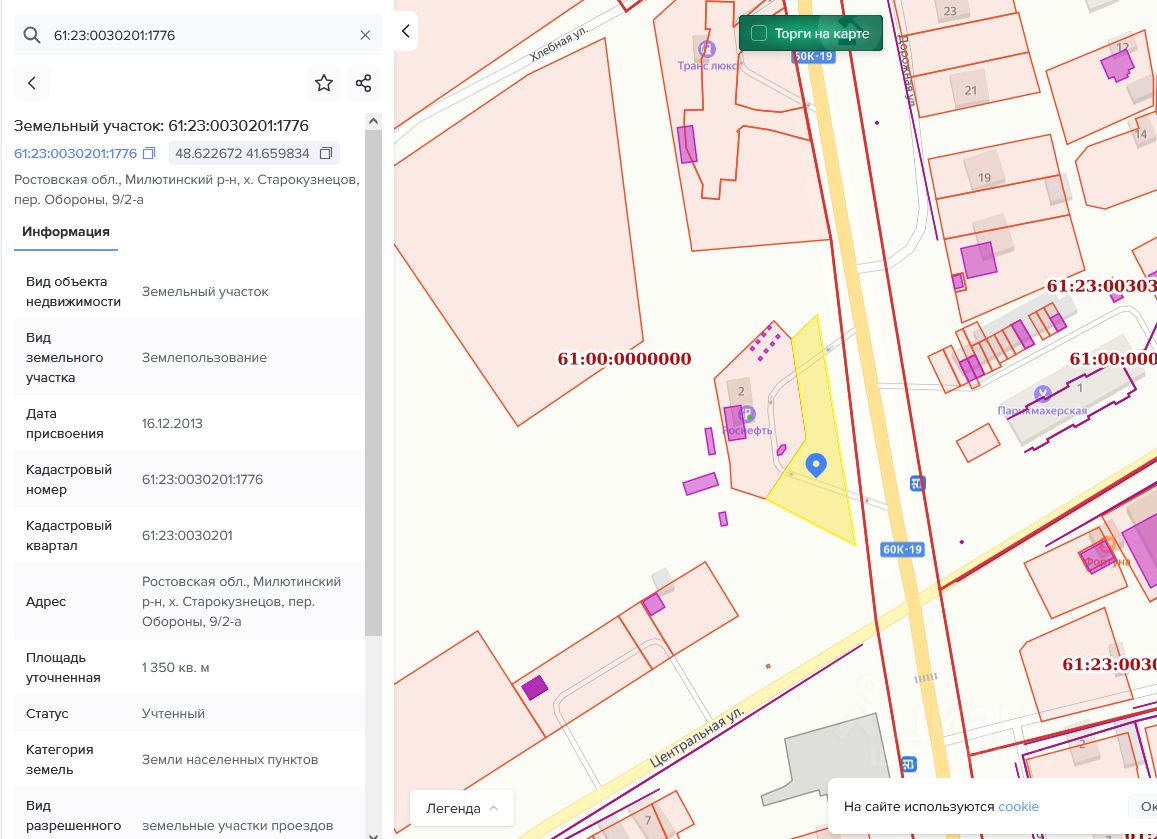 Лот 2: аренда земельного участка, государственная собственность на который не разграничена, расположенного по адресу: Ростовская область, Милютинский район, х. Старокузнецов, пер. Обороны, 9/2-а, площадью 1350 кв.м. с кадастровым номером 61:23:0030201:1776, категория земель - земли населенных пунктов, разрешенное использование: земельные участки проездов, сроком на 5 лет.