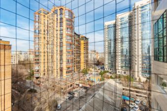 - Высокие потолки и панорамные окна создают светлое, просторное рабочее пространство с видом на город, что усиливает представительский эффект.