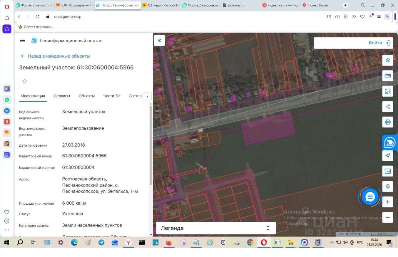 Земельный участок из состава земель населенных пунктов с кадастровым номером 61:30:0600004:5966, площадью 6000 кв.м., вид разрешенного использования деловое управление; объекты торговли торговые центры, торгово - развлекательные центры (комплексы); магазины, расположенный по адресу: Российская Федерация, Ростовская область, Песчанокопский район, с. Песчанокопское, ул. Энгельса, 1-м