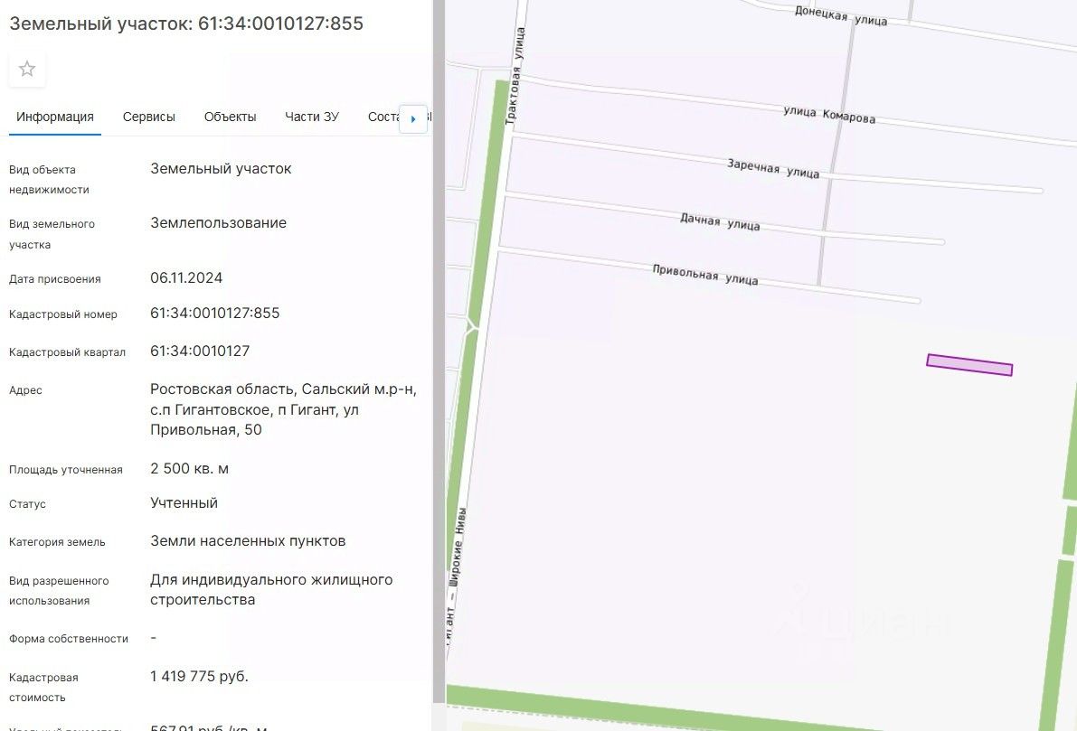 61:34:0010127:855, адрес: Ростовская область, Сальский м.р-н, с.п Гигантовское, п Гигант, ул Привольная, 50.
