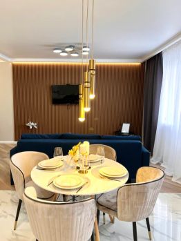 Апартаменты позволяют разместить до 4-х взрослых, на комфортной двухспальной кровати (размер 1,60*2,00) и дополнительные места на диван-кровать (спальное место 1,40*2,00), с мягкими подушками и одеялами.