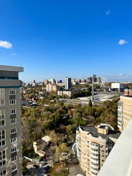Квартира с большой лоджией откуда открывается красивый вид на Театральную площадь, реку Дон и стадион Ростов Арена.