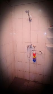 На общей кухне установлена газовая колонка горячей воды и две общие газовые печи. Душевая и туалет раздельные.