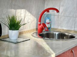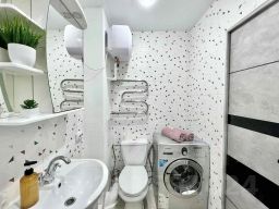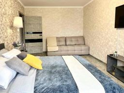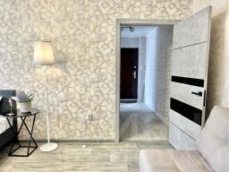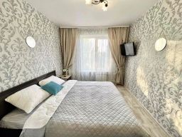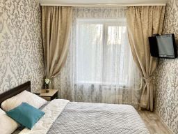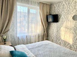 Предусмотрено размещение до пяти человек: две двуспальные кровати и один раскладной диван, всего три раздельных спальных места. В наличии бытовая техника, водонагреватель, сплит-системаa. В каждой комнате установлен ЖК-телевизор, также есть Smart TV и бесплатный скоростной Wi-Fi.