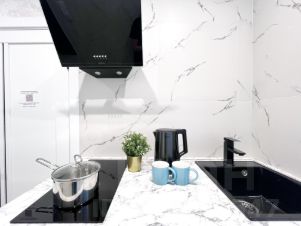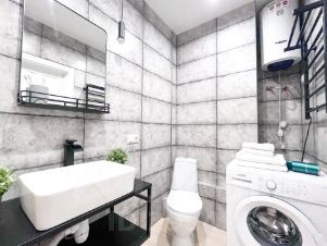 Шкаф, кондиционер, стиральная машина автомат, сушилка, холодильник, электропечь, микроволновая печь, утюг с гладильной доской, телевизор с отменным качеством изображения-SMART TVи Алиса, WI-FI.