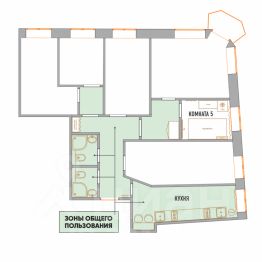 В общей для 6ти номеров зоне пользования: