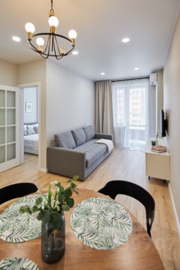 В квартире есть все необходимое для комфортного проживания: двухспальная кровать, раскладной диван, смарт телевизор, холодильник, чайник, микроволновая печь, посуда, стиральная машина, фен, утюг, кондиционер, Wi-Fi.
