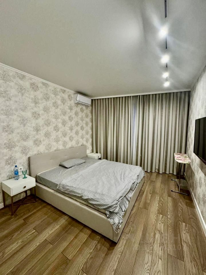 Квартира с евроремонтом, полностью готова к комфортному проживанию. В комнатах и на кухне установлена современная мебель. Для вашего удобства есть вся необходимая техника: кондиционер, холодильник, посудомоечная машина, телевизор и стиральная машина. Санузел совмещённый, оборудован ванной.