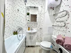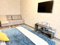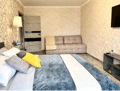 В квартире выполнен качественный ремонт из дорогих материалов и есть все необходимая для комфортного проживания. Спальные места: две двуспальные кровати и диван раскладной, стиральная машина-автомат, кухня с необходимой посудой и столовыми приборами, современный совмещённый санузел, постельное бельё, махровые полотенца и гигиенические принадлежности, два плазменных телевизора, скоростной wi-fi, сплит система, водонагреватель.