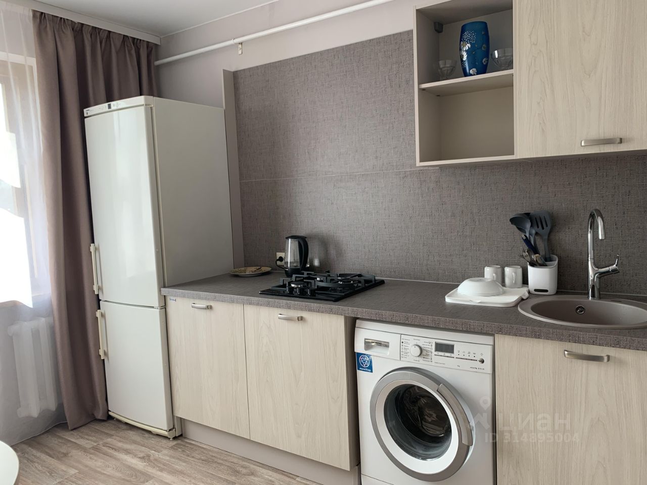 В квартире есть всё необходимое: кухонный гарнитур, холодильник, стиральная машина, микроволновая печь, утюг, диван, шкаф, комод, Wi-Fi, телевизор.