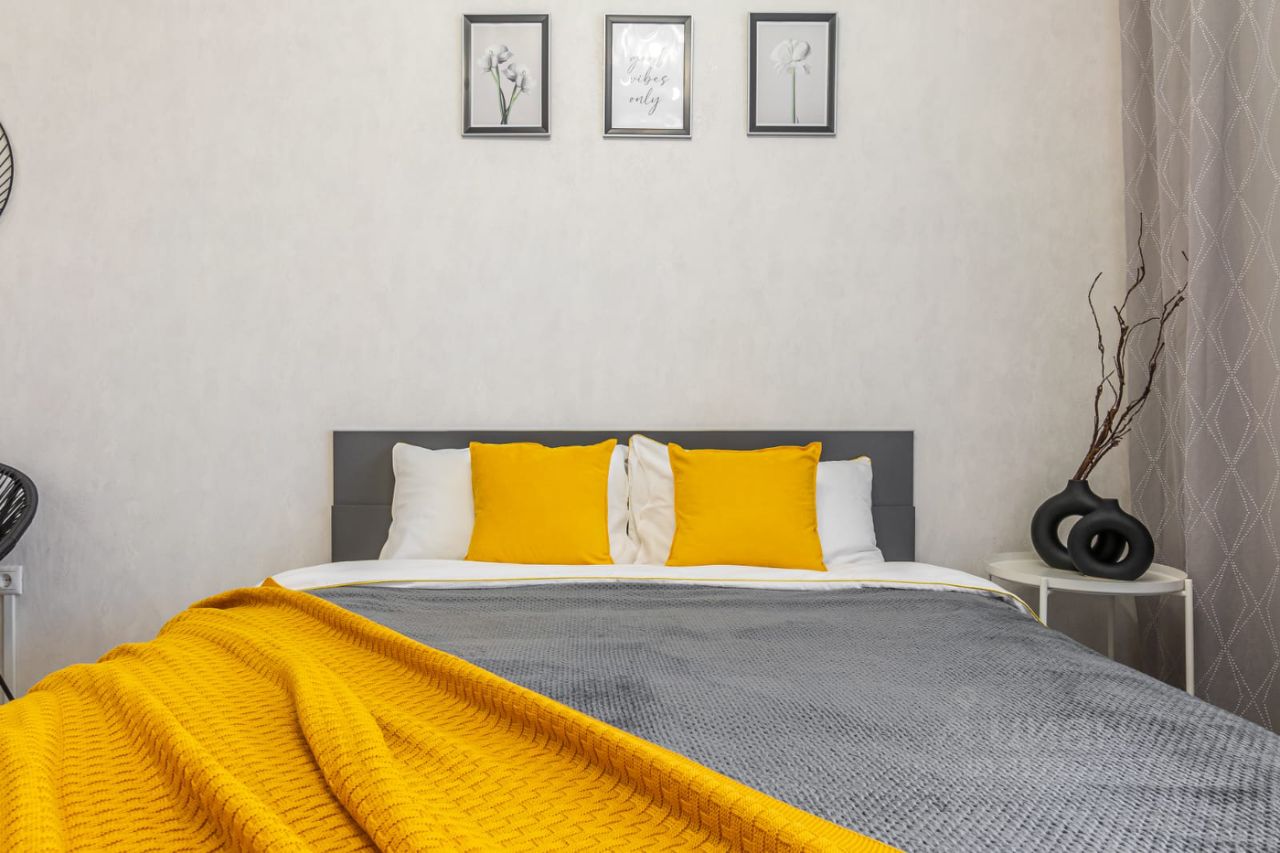 В квартире имеется двухспальная кровать с ортопедическим матрасом.