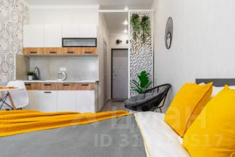 Студия находится на 20м этаже, с балкона открывается прекрасный вид на город. В доме консьерж, видео наблюдение, три скоростных лифта