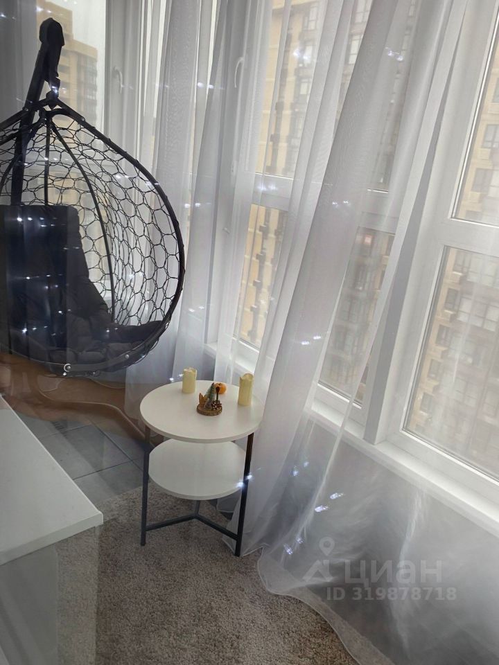 Кондиционер (сплит-система), стиральная машина, фен, сушилка для белья, утюг и гладильная доска.Кофемашина, Яндекс Алиса, балкон оборудован кресло кокон, журнальный столик.