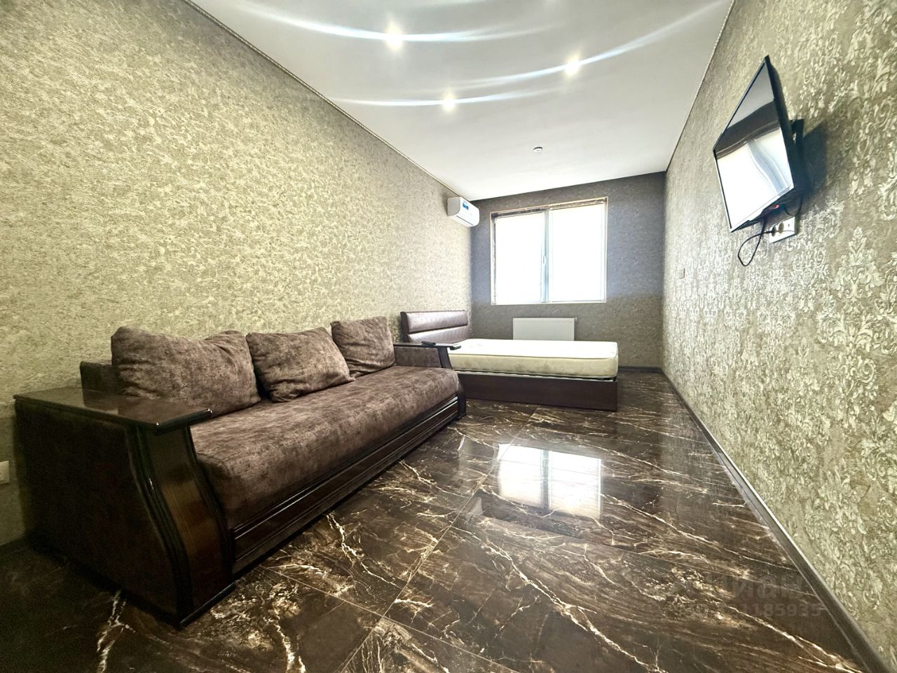 В квартире есть всё необходимое для комфортного проживания. В комнате и на кухне установлена современная мебель. К вашим услугам кондиционер, холодильник, телевизор и стиральная машина.