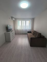 Квартира отличается качественным ремонтом: по всей площади уложен красивый ламинат, установлены элегантные натяжные потолки. Застеклённый балкон станет дополнительным местом для отдыха.