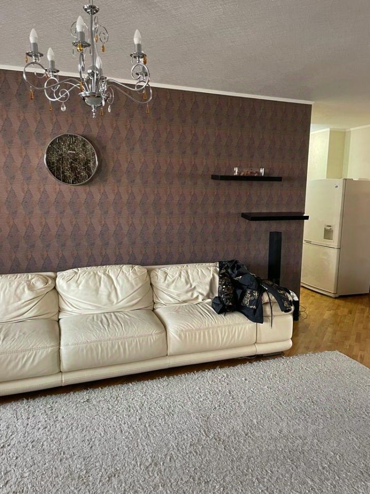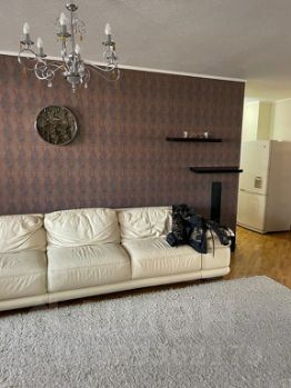 Квартира полностью готова к проживанию: есть вся необходимая мебель как на кухне (кухонный гарнитур, стол, стулья, кожаный диван, но он не раскладывается), так и в комнате (большая двуспальная кровать) . Много шкафов для хранения вещей. Из техники в вашем распоряжении: кондиционер, холодильник, телевизор и стиральная машина. Санузел совмещен с ванной и оснащен тёплым полом.