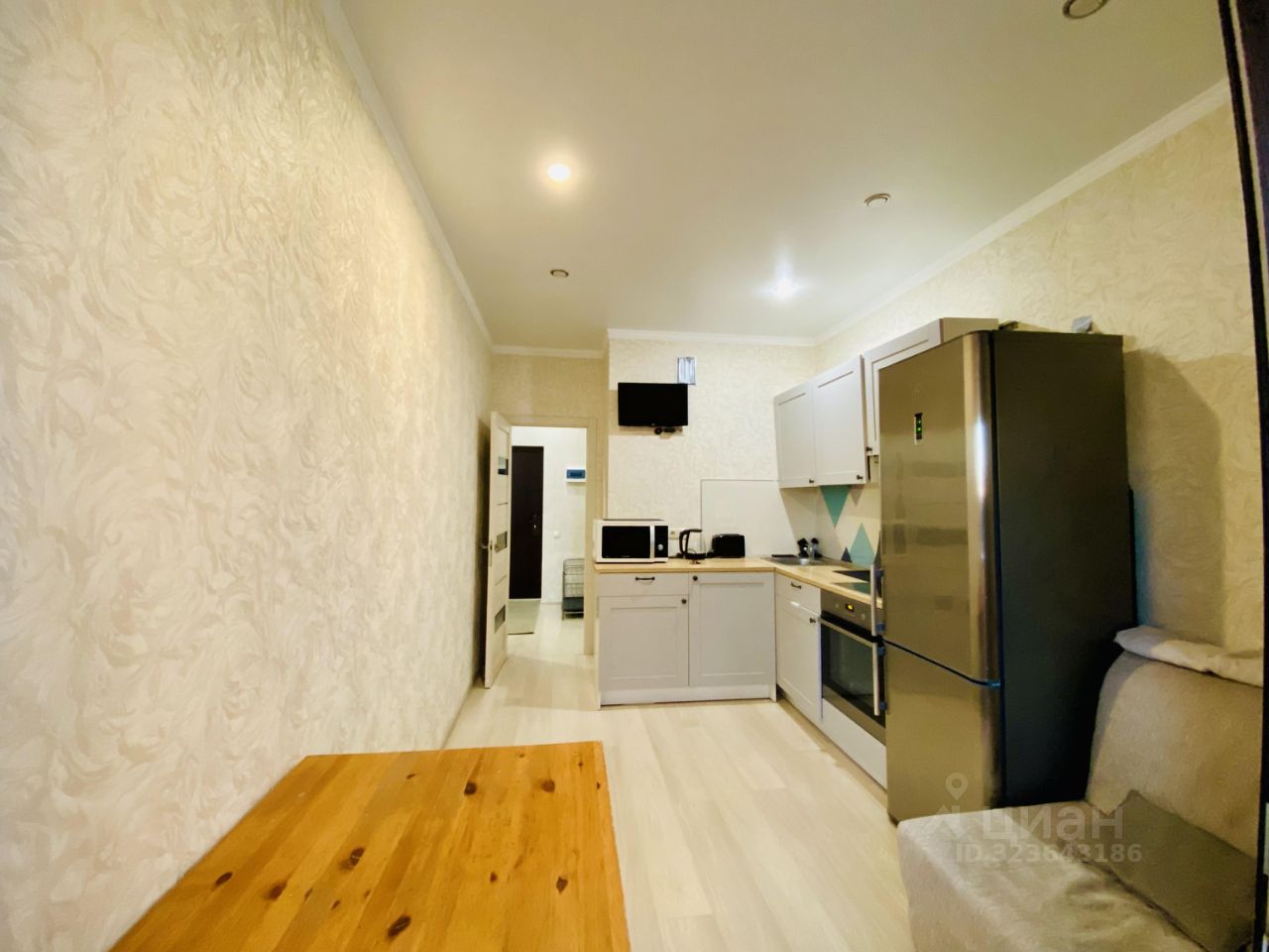В квартире есть всё необходимое для комфортного проживания: современная мебель на кухне и в комнате, а также полный комплект техники — кондиционер, холодильник, телевизор и стиральная машина. Санузел совмещённый, оборудован душевой кабиной. В квартире также есть лоджия, где можно наслаждаться свежим воздухом и видами на окрестности.