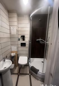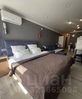 В квартире выполнен косметический ремонт, создающий атмосферу уюта и комфорта. Планировка студии позволяет удобно расположить мебель и технику. В комнате и на кухне уже есть вся необходимая мебель. В апартаментах установлены кондиционер, холодильник, телевизор и стиральная машина, поэтому вы сразу можете почувствовать себя как дома. Ванная комната оборудована душевой кабиной.