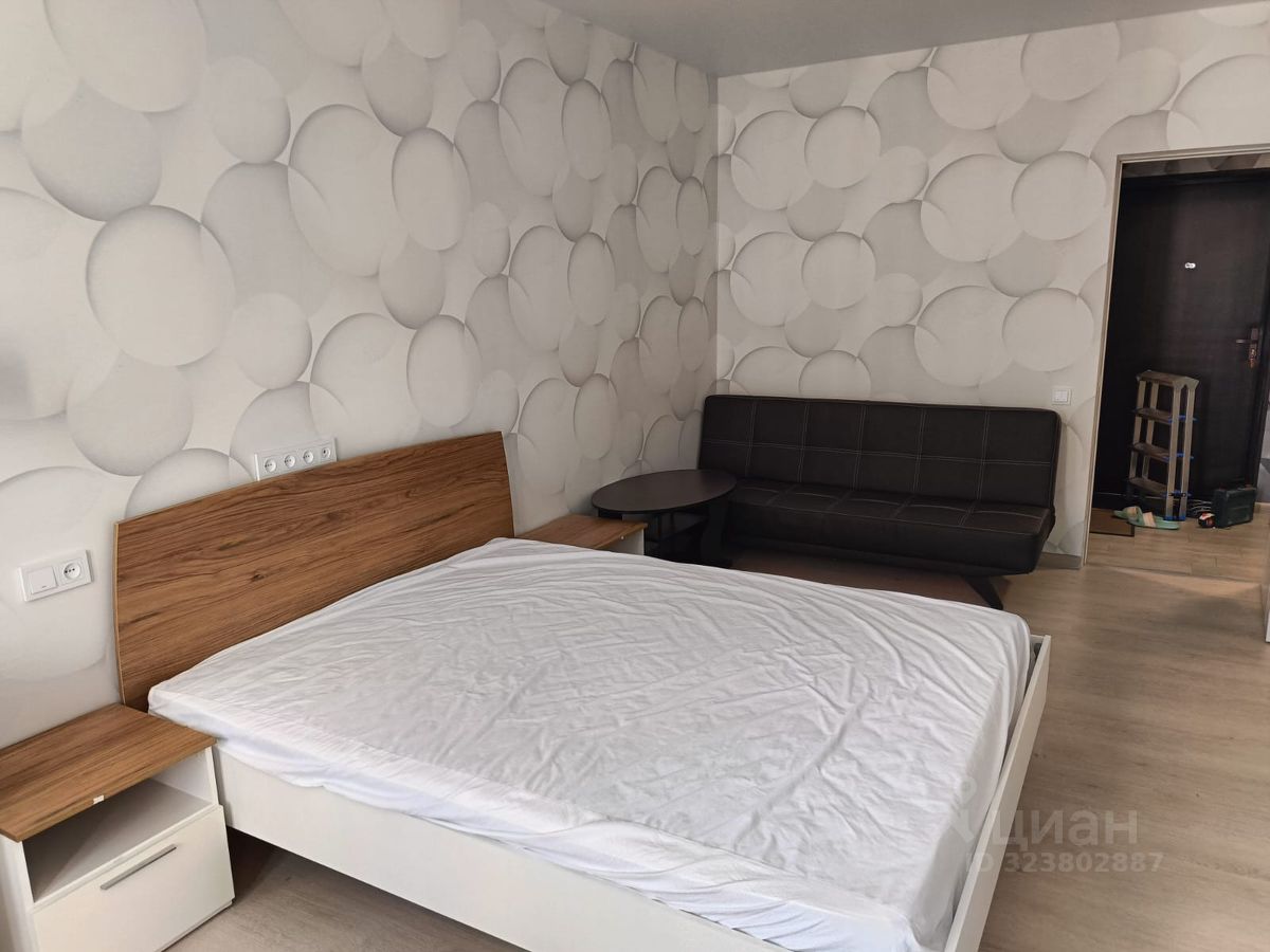 Сдаётся в аренду уютная однокомнатная квартира с потрясающим евроремонтом,да спальных места(2хспальная кровать и диван). Общая площадь 42 кв. м, жилая площадь 18 кв. м, а кухня просторная 12 кв. м. Квартира расположена на 12 этаже современного 21-этажного дома, построенного в 2023 году. Окна выходят во двор, что обеспечивает тишину и комфорт.