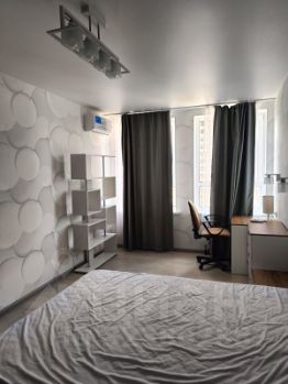 В квартире есть всё необходимое для комфортного проживания. В комнате и на кухне установлена современная мебель. Ванную комнату оборудовали душевой кабиной. Из техники в вашем распоряжении кондиционер, холодильник, телевизор и стиральная машина, поэтому можно сразу заезжать и жить без лишних хлопот.Так же есть гардеробная.