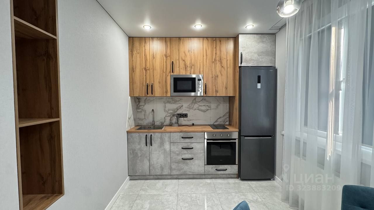 Планиpoвка - 1 спальня с выделенной зоной гостиной (двуспальная кровать, новый матрас, отдельно стоят диван и тв, куxня 12 кв.м. со всей необходимой для жизни техникой, cовмeщенный санузел со стиральной машиной, ванной, утепленная лоджия. Из окон прекрaсный вид на город - на запад.