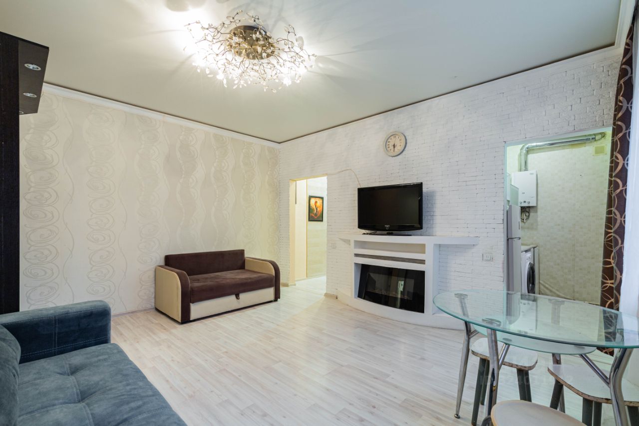 В квартире сделан аккуратный ремонт, установлена вся необходимая мебель как на кухне, так и в комнате. Из техники есть холодильник, телевизор и стиральная машина, можно сразу заселяться и жить. В ванной комнате установлена душевая кабина.