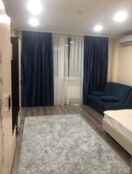 В квартире сделан евроремонт. Пространство студии организовано максимально удобно: здесь есть всё необходимое для комфортного проживания. Квартира оборудована современной мебелью и техникой, включая кондиционер, холодильник, посудомоечную и стиральную машины. Из спальных мест две кровати и один диван.