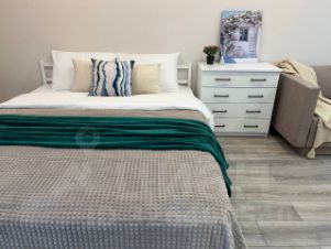 В квартире Вас ждет удобная двуспальная кровать со свежим постельным бельем