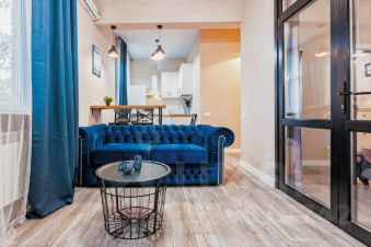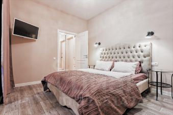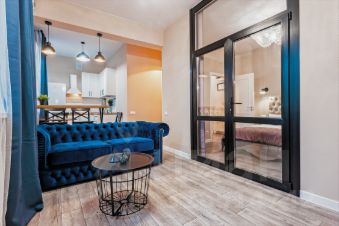 Квартира рассчитана на комфортное проживание 2 человек. В спальне расположена двухспальная кровать, в зоне гостиной диван НЕ раскладывается.