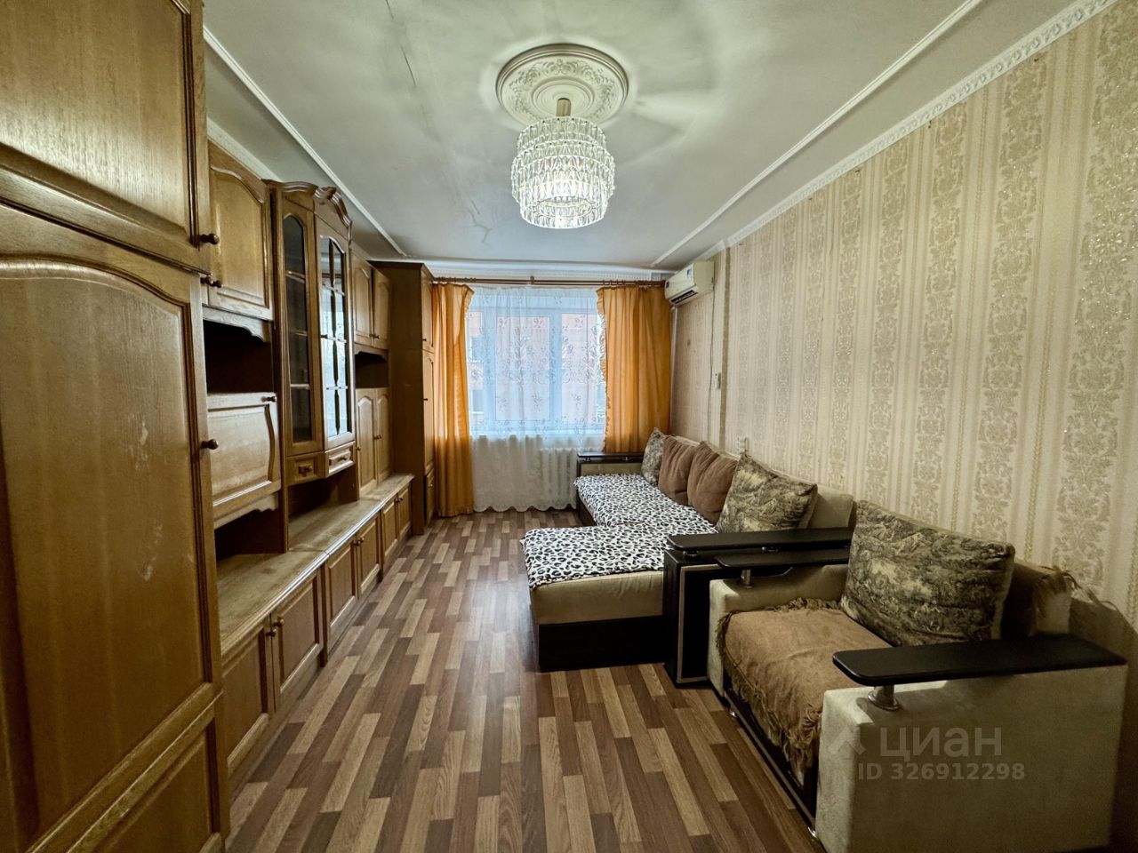 Есть гардеробная для хранения вещей, а также вместительная мебельная стенка, большой диван, кресло-кровать, кухонная мебель, холодильник, сплит-система, стиральная машина.