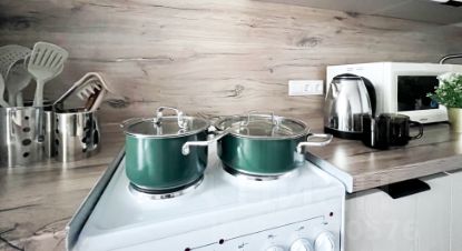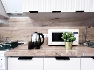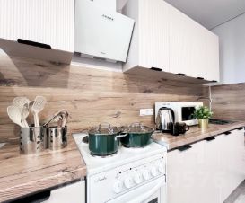 Полное оснащение: В квартире есть всё, чтобы чувствовать себя как дома: двуспальный диван и кровать на лоджии, ЖК-телевизор с кабельным ТВ, безлимитный Wi-Fi, чайник, посуда, столовые приборы, кастрюли и сковородки.