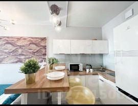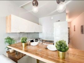 В квартире сделан качественный дизайнерский ремонт, есть вся необходимая мебель, как в комнате, так и на кухне. Для вашего удобства установлены кондиционер, холодильник, телевизор и стиральная машина. Совмещенный санузел оборудован ванной, что позволит расслабиться после долгого дня. В квартире также есть лоджия, где можно обустроить зону отдыха.